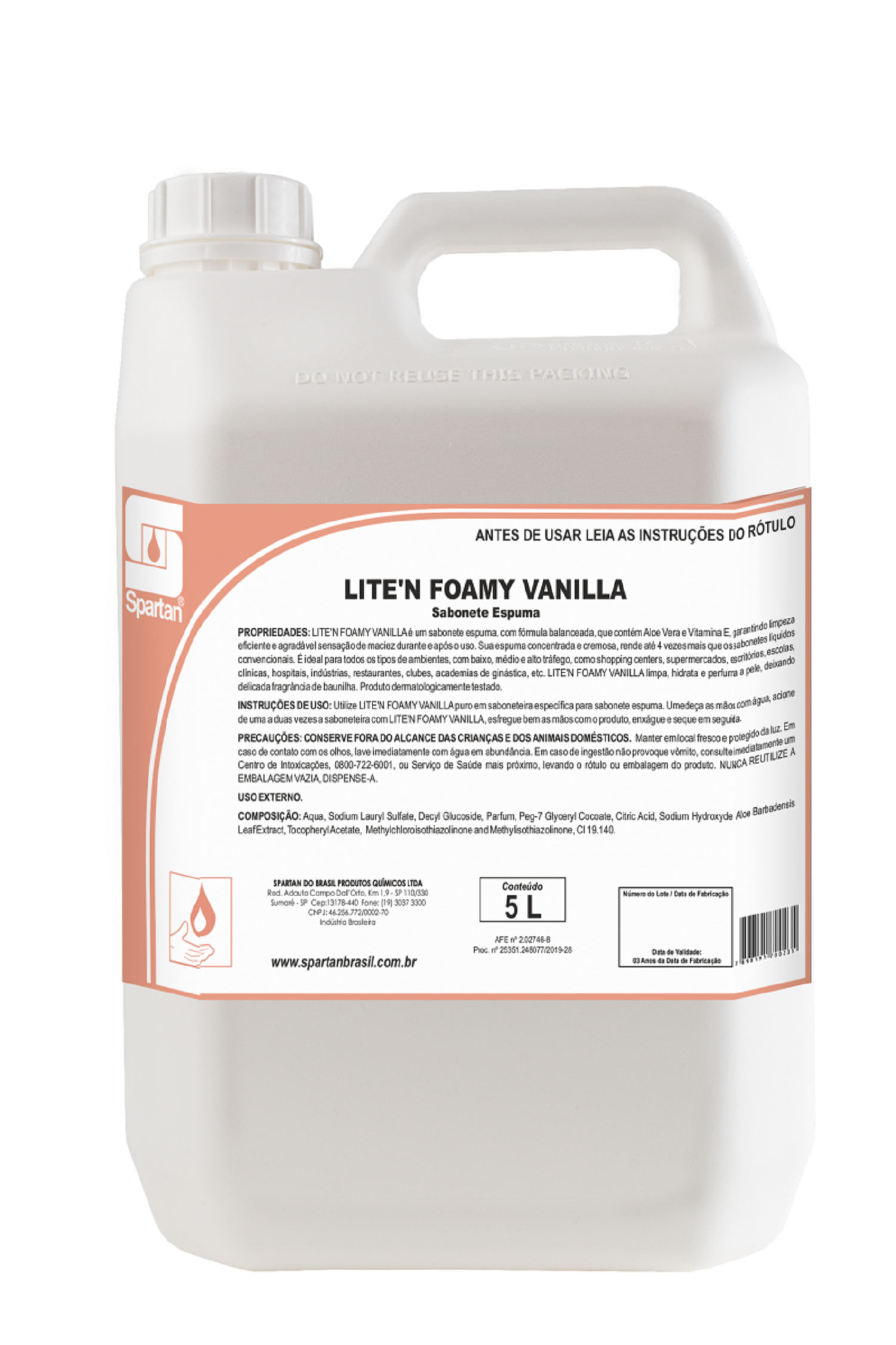 LITE’N FOAMY VANILLA é um sabonete espuma, com fórmula balanceada, que contém Aloe Vera e Vitamina E, garantindo limpeza eficiente e agradável sensação de maciez durante e após o uso.